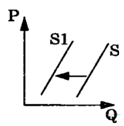 Предложение уменьшилось, так как у производителей появились большие издержки, им не выгодно повышать предложение или держать на том же уровне, так как все будет зависеть от спроса на те или иные блага.